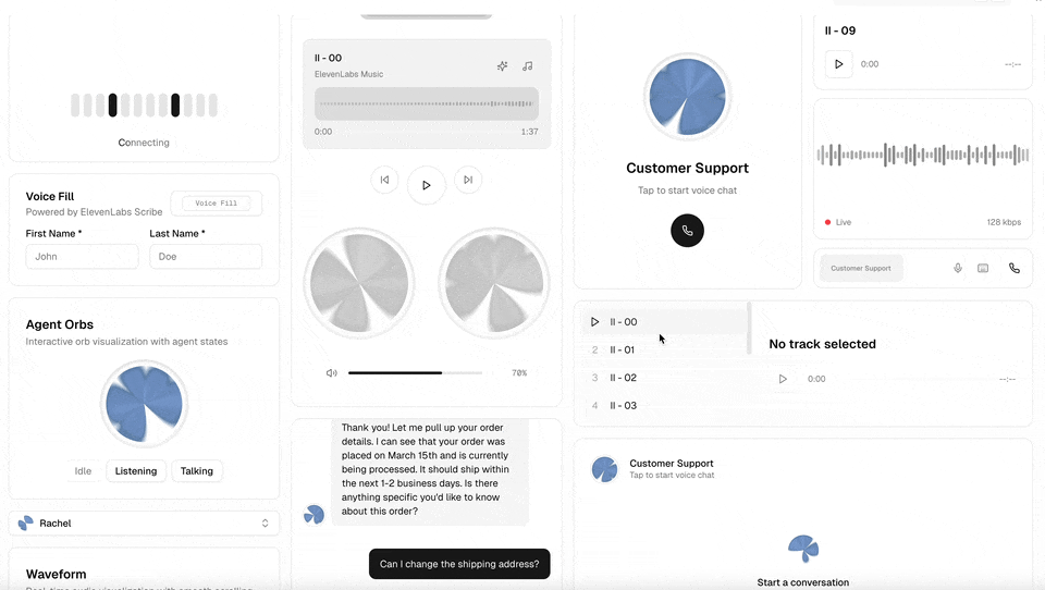 Демо и документация: https://ui.elevenlabs.io/